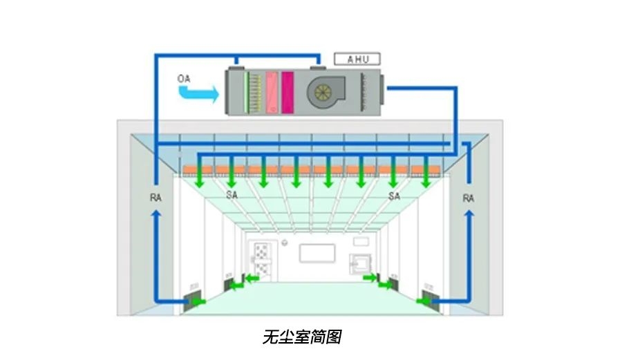 無(wú)塵室亦稱為潔凈室或清凈室,是指將一定空間范圍內(nèi)之空氣中的微粒子、有害空氣、細(xì)菌等污染物排除,并將室內(nèi)之溫度、潔凈度、室內(nèi)壓力、氣流速度與氣流分布、噪音振動(dòng)及照明、靜電控制在某一需求范圍內(nèi),而所給予特別設(shè)計(jì)之房間。無(wú)塵室最主要之作用在于控制產(chǎn)品(如硅芯片等)所接觸之大氣的潔凈度及溫濕度,使產(chǎn)品能在一個(gè)良好之環(huán)境空間中生產(chǎn)、制造,此空間我們稱之為無(wú)塵室。