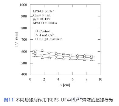 如圖10所示,Ca2+作用時EPS濃縮回收過程(第一階段)的過濾阻抗減小,而硅藻土助濾劑作用時過濾阻抗進一步降低。