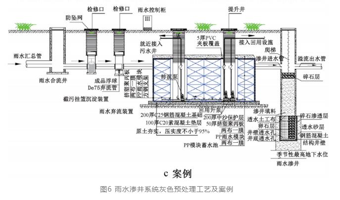 實(shí)踐中也可采取初期棄流/沉淀+生物滯留等灰-綠設(shè)施結(jié)合方式實(shí)現(xiàn)系統(tǒng)預(yù)處理目標(biāo)。須強(qiáng)調(diào)的是,預(yù)處理并非萬(wàn)能,醫(yī)院、垃圾場(chǎng)站等傳染性疾病、嚴(yán)重化學(xué)污染場(chǎng)所不得設(shè)置雨水滲井。
